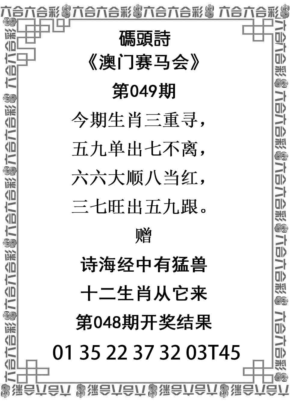 | 第049期: 生肖:马狗羊鼠 不中:36.45.28.25. 七尾:0-8-4-1-9-7-2- 三行:火水土 三头:1头4头3头 |